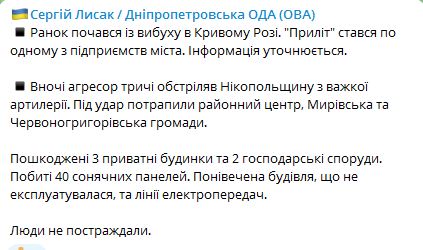 Ранок 26 вересня почався з вибуху у Кривому Розі.