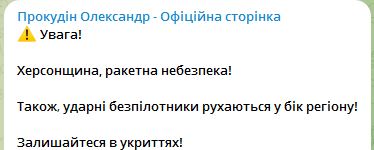 08.50 На Херсонщині загроза ракетного удару.