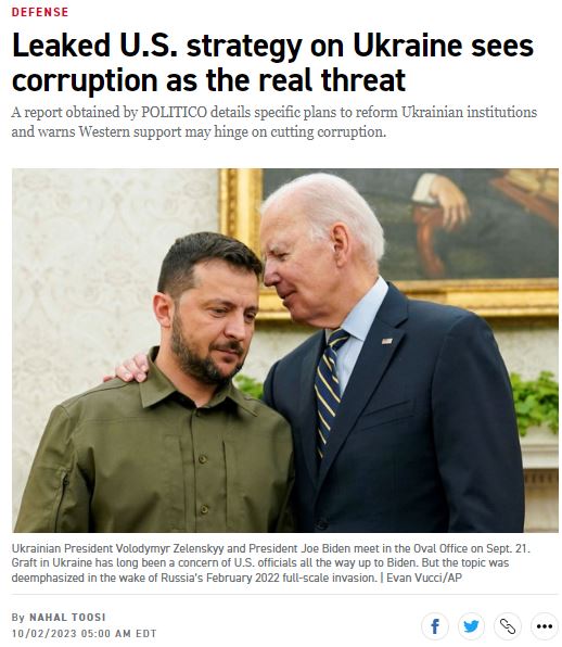 "У ньому наголошується, що корупція може призвести до того, що західні союзники відмовляться від допомоги Україні у боротьбі проти вторгнення Росії, і що Київ не може відкладати зусиль для боротьби з корупцією. Існування корупції на найвищому рівні може підірвати довіру української громадськості та іноземних лідерів до уряду воєнного часу", - пише POLITICO.