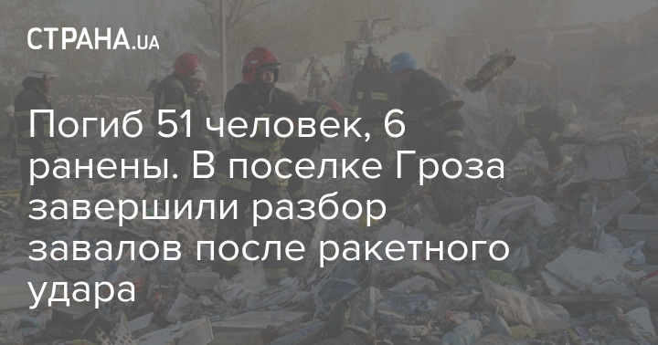 Загинула 51 особа, 6 поранені. У селищі Гроза завершили розбір завалів після ракетного удару