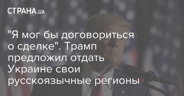 "Я міг би домовитися про угоду. Можна було б віддати області, які тяжіють до того, щоби бути російськими, де люди розмовляють російською мовою. Тоді можна було б зберегти країну", - заявив він порталу Just the News.