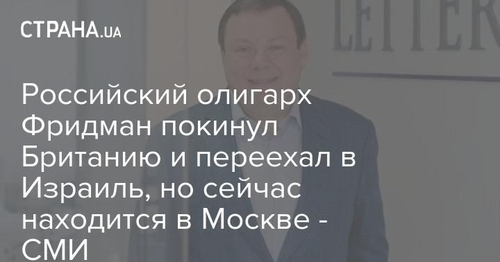Російський олігарх Михайло Фрідман залишив Велику Британію, де проти нього ввели санкції, та переїхав до Ізраїлю. Проте зараз олігарх перебуває у Москві.