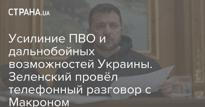 "Ми з президентом Макроном зосередилися на подальших кроках щодо зміцнення протиповітряної оборони, далекобійних та військово-морських здібностей України", - написав Зеленський.
