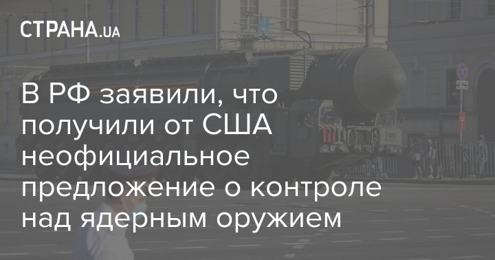 У РФ заявили, що отримали від США неофіційну пропозицію з питань стратегічної стабільності та контролю за ядерною зброєю.
