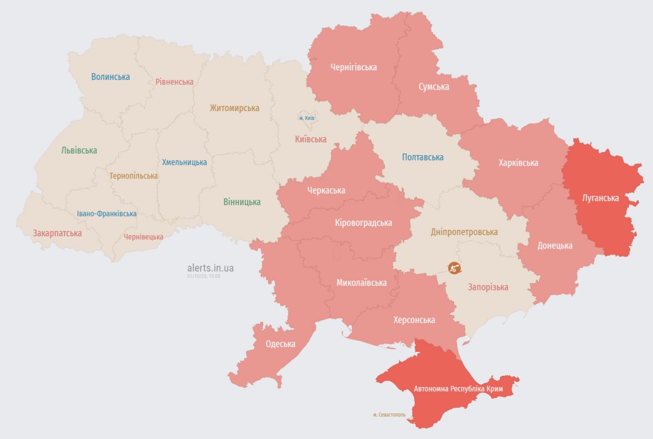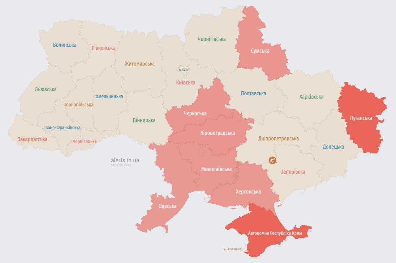 11:06 Тривога розширилась на північний схід України. Повітряні сили попереджають про загрозу авіаракетного удару.