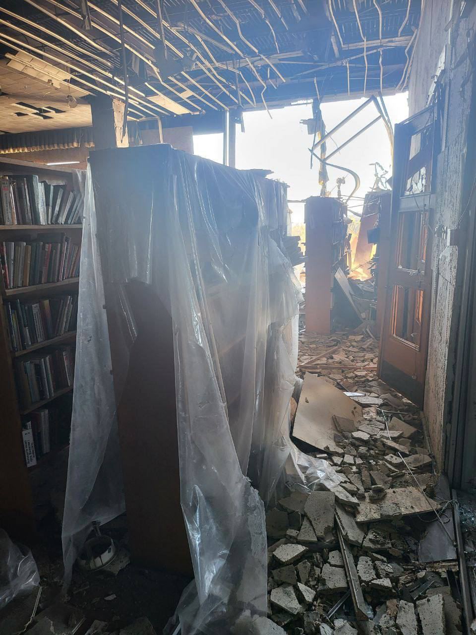 Постраждала бібліотека. У ній почалася пожежа, будівля суттєво пошкоджена.