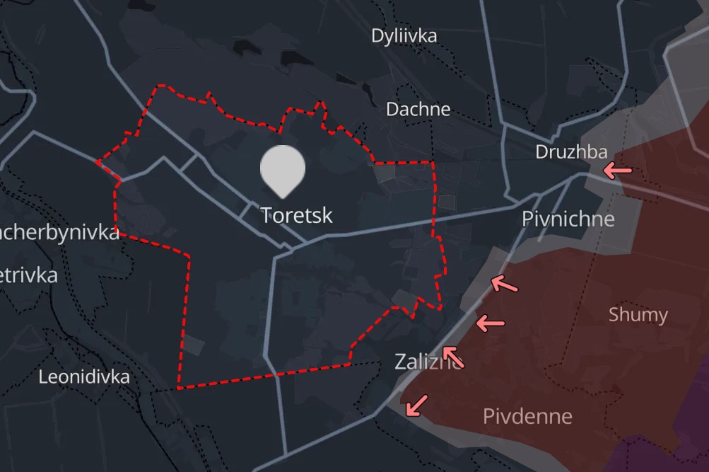 Військовий паблік Deep State повідомляє, що бої йдуть на підступах до Торецька, а також у селах Залізне та Північне на схід від міста.