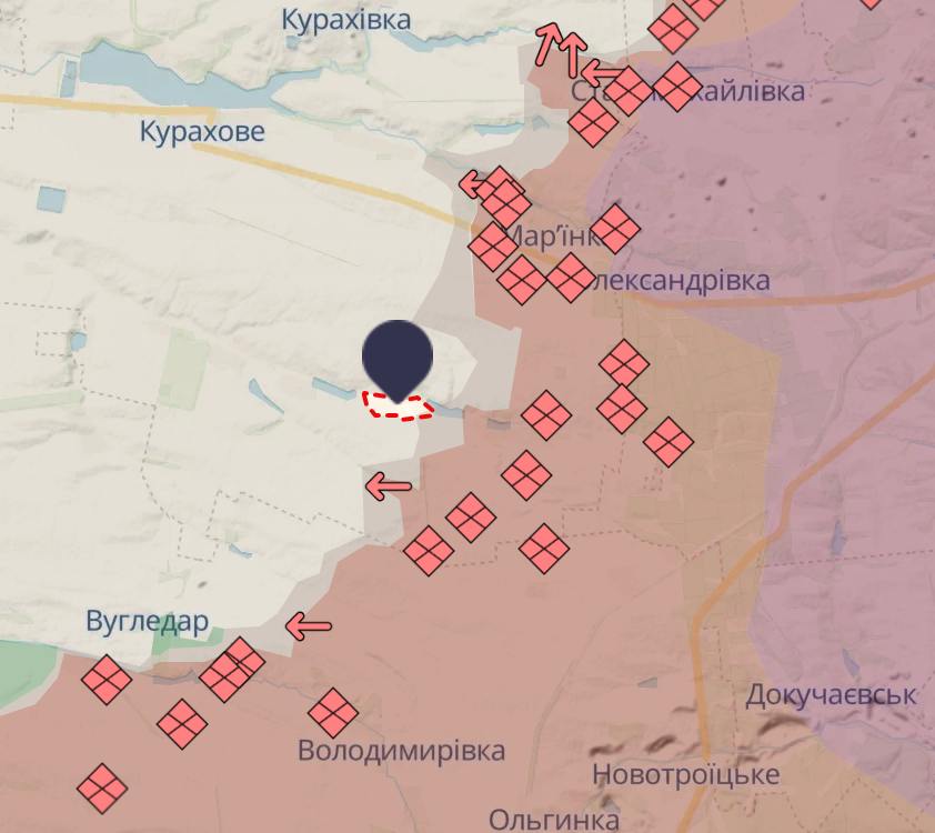 Також російські війська, за даними Deep State, просунулися у Красногорівці. І крім того – на запорізькому фронті: під Урожайним та на захід від Роботино. Про просування на захід від Роботино пишуть і російські військові паблики.