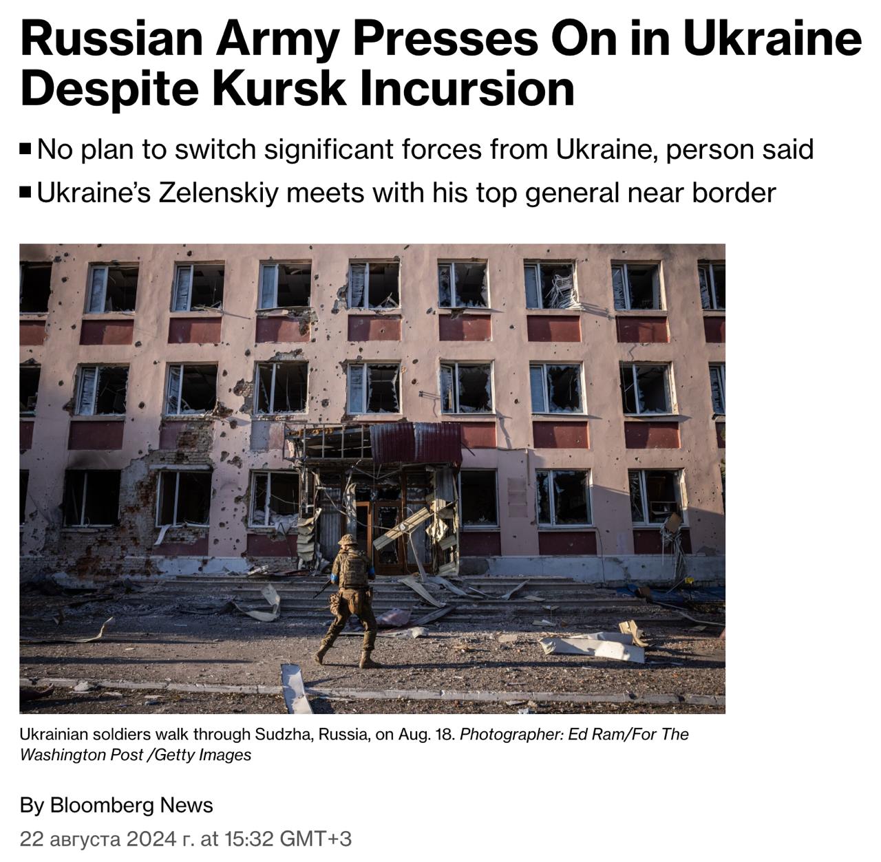 А The Wall Street Journal повідомляв, що незважаючи на успіхи України в Курській області, для Росії повернення цих територій під свій контроль може бути "другорядним завданням".