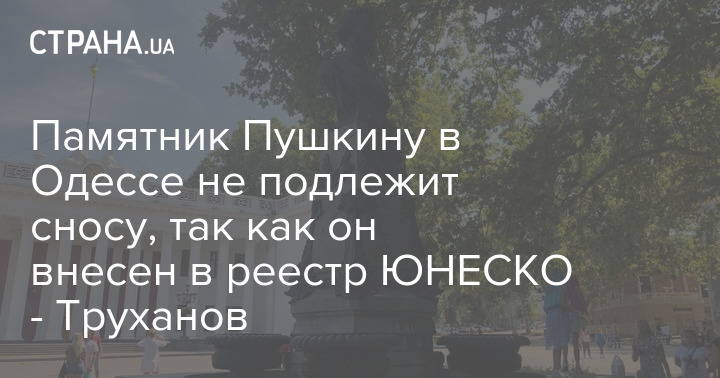 Пам'ятник російському поетові Олександру Пушкіну в Одесі, встановлений 1889 року на Приморському бульварі коштом, пожертвовані одеситами, зносити не можна, оскільки він внесений до Реєстру ЮНЕСКО.