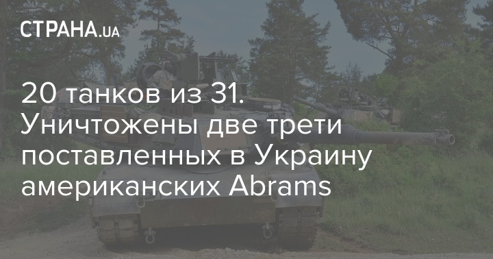 З 31-го танка Abrams, поставлених Україні зі Штатів, наразі знищено двадцять бронемашин і ймовірність їх заміни невисока.