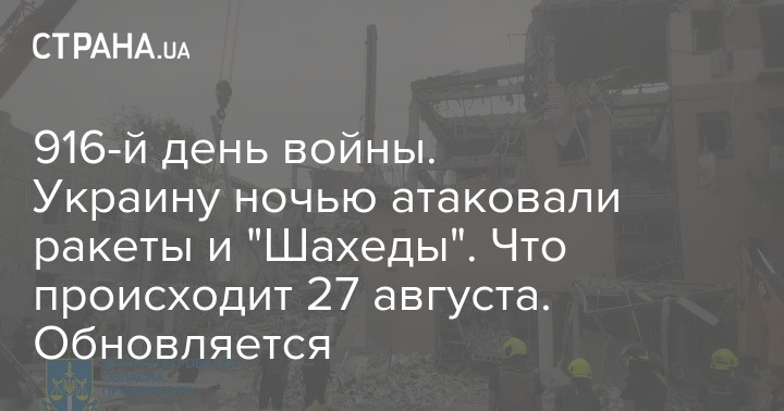 У вівторок, 27 серпня, в Україні триває 916-й день війни з Росією.