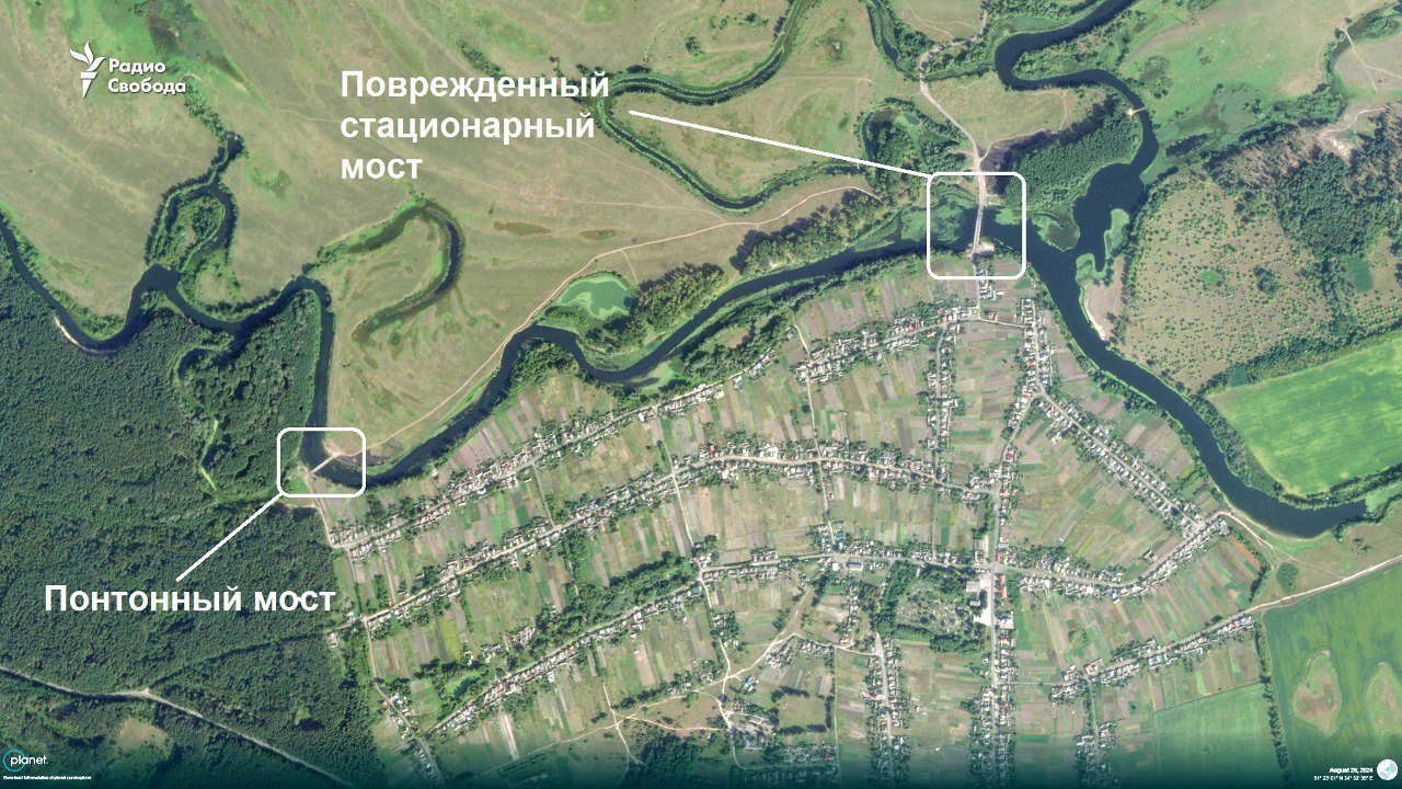 18:14 Російська армія збудувала четверту понтонну переправу через річку Сейм у Курській області, свідчать супутникові знімки. Вона з'явилася у селі Званне за два кілометри від стаціонарного мосту, серйозно пошкодженого обстрілами.