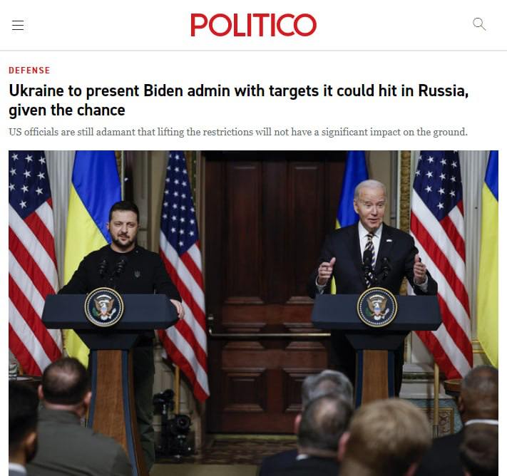 10:20 Україна надасть адміністрації Байдена список цілей на території РФ, які вона може вразити далекобійною зброєю, якщо їй дадуть такий дозвіл, пише Politico з посиланням на джерела.