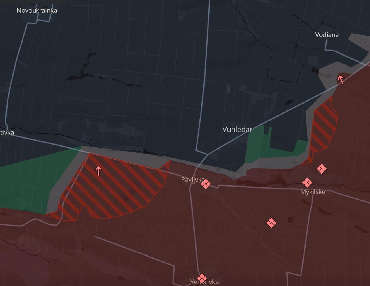 Також українські військові та російські паблики пишуть про просування росіяни у Гродівці на північно-західному фасі наступу РФ під Покровськом (це напрям на Мирноград).