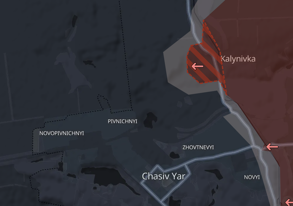 При цьому, за даними Deep State, російські війська просунулися на північ від Часового Яру - з боку Калинівки, зважаючи на все, перейшовши в черговий раз канал Сіверський Донець - Донбас. Просування з урахуванням сірої зони – в районі кілометра. Якщо росіянам вдасться там закріпитися, то вони зможуть атакувати місто не лише зі сходу, а й із півночі. Також російські паблики продовжують писати, що армія РФ суттєво просунулась біля Клещеївки, взявши там під свій контроль ключові висоти та територію аж до каналу Сіверський Донець-Донбас. Україна цього не підтверджувала.