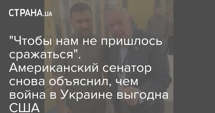 "Щоб нам не довелося битися". Американський сенатор знову пояснив, чим війна в Україні вигідна США