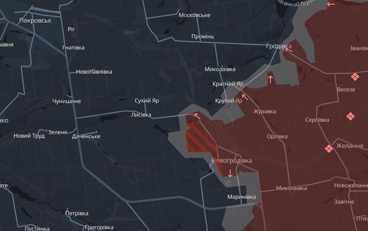 Під Покровськом вони атакували на північний захід від Новогродівки у бік Лисівки. Тобто телеграм-канал підтвердив учорашні заяви українських військових про атаку на Лисовку.