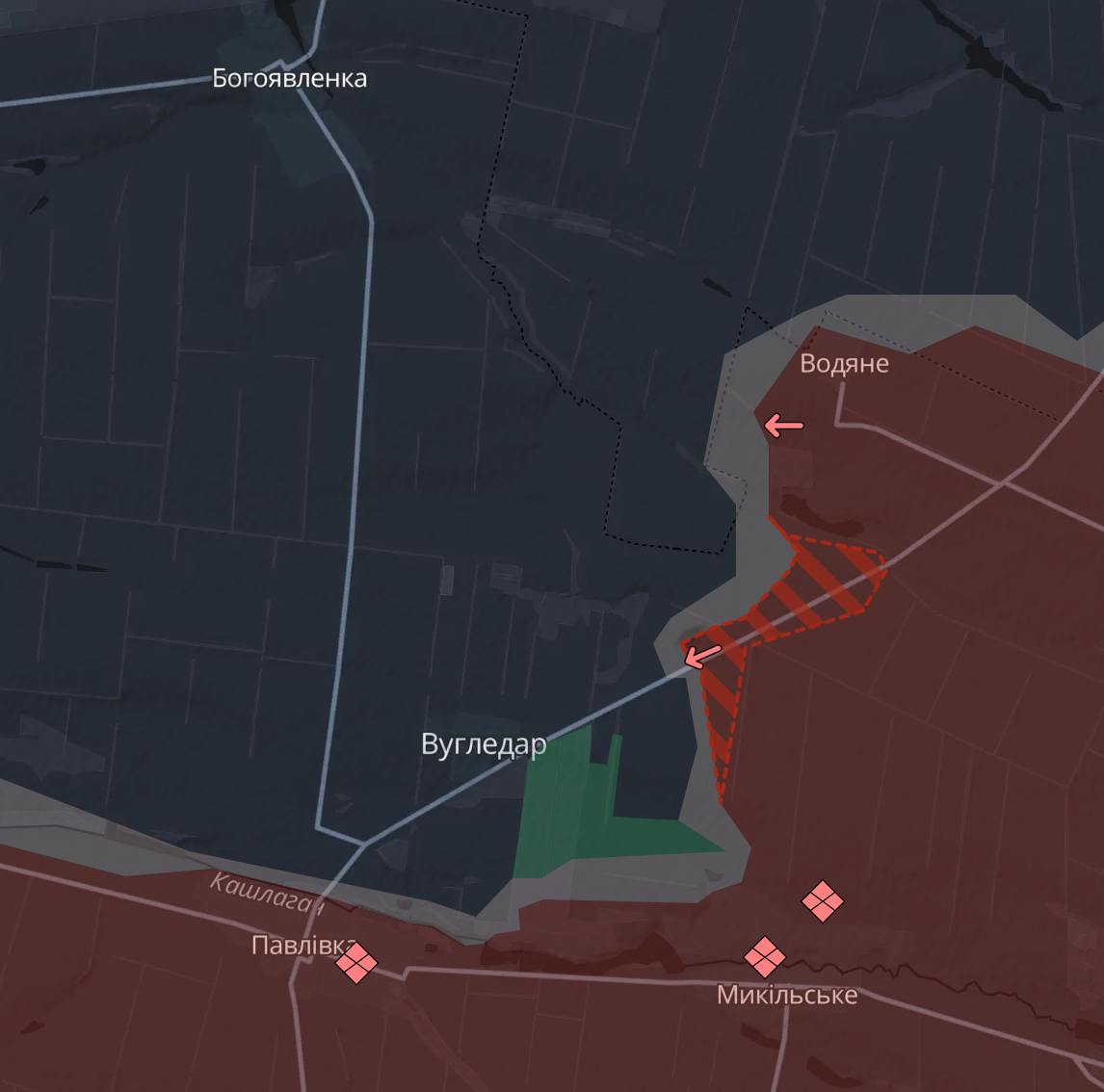 А під Вугледаром просунулися південніше нещодавно захопленого Водяного, підходячи до Вугледару з північного сходу.