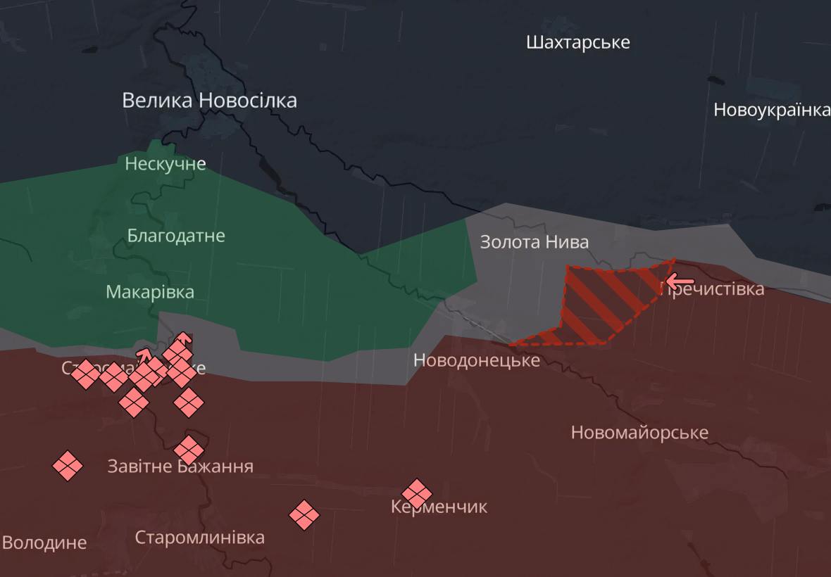 Також у РФ значний поступ під Великою Новосілкою - у бік села Золота Нива зі сторони нещодавно захопленої Пречистівки. У Золотій Ниві тривають бойові дії.