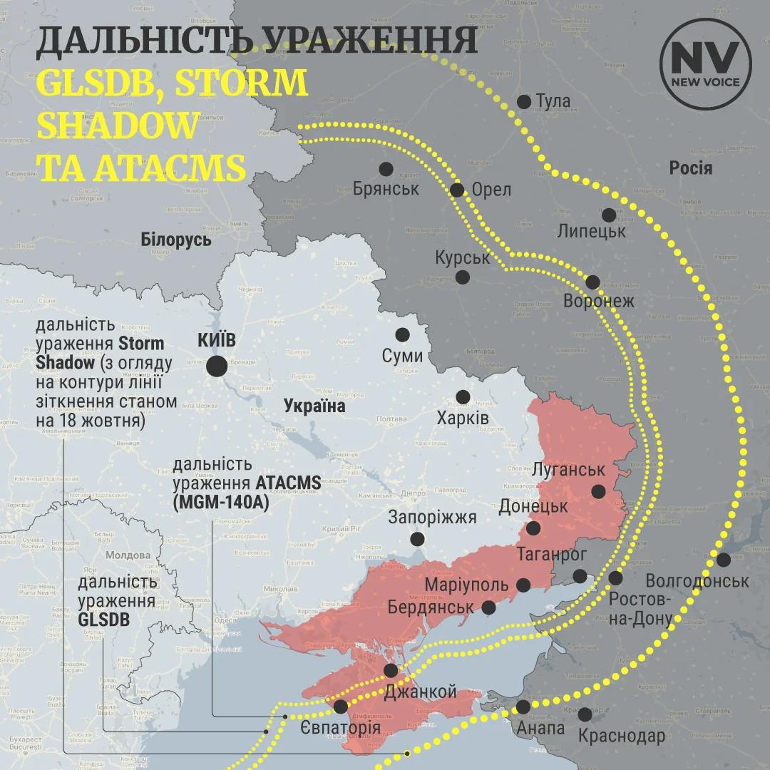 Тим не менш, якщо взяти за основу характеристики далекобійності Storm Shadow, то в гіпотетичну зону їх поразки потрапляють такі великі міста РФ як Воронеж, Липецьк, Ростов-на-Дону, Орел, Брянськ та Курськ.
