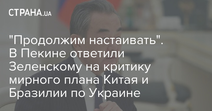У Пекіні відповіли на заяву Володимира Зеленського про "деструктивний" мирний план Китаю та Бразилії щодо України.