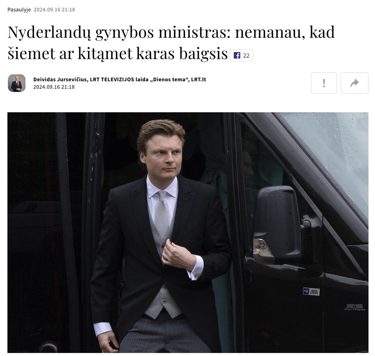 10:50 Міністр оборони Нідерландів вважає, що війна в Україні не закінчиться наступного року.