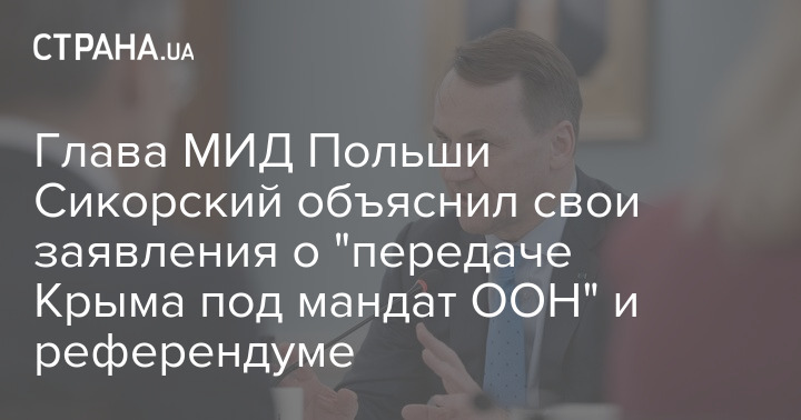 Глава МЗС Польщі Радослав Сікорський пояснив свої заяви про "передачу Криму під мандат ООН" та референдум через 20 років.