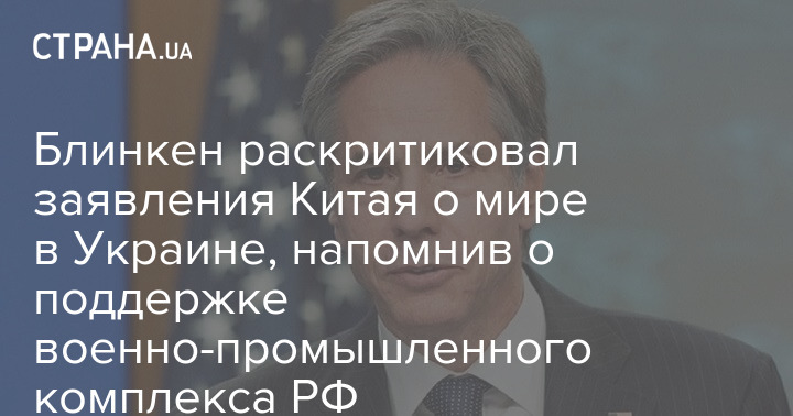 Державний секретар США Ентоні Блінкен розкритикував мирні плани Китаю для закінчення війни в Україні. Про це пише Reuters.