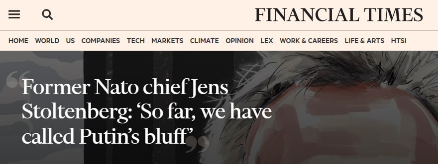Таку думку висловив екс-генсек НАТО Єнс Столтенберг в інтерв'ю Financial Times.