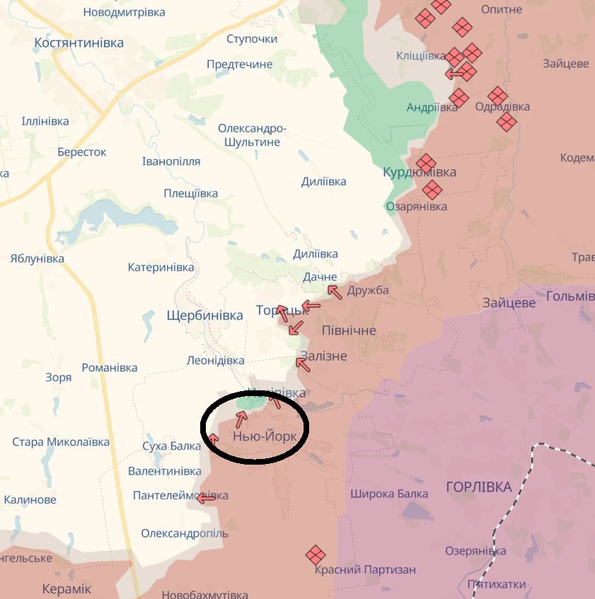 Крім того, повідомляється про просування росіян у районі Нью-Йорка (Костянтинівський напрямок).
