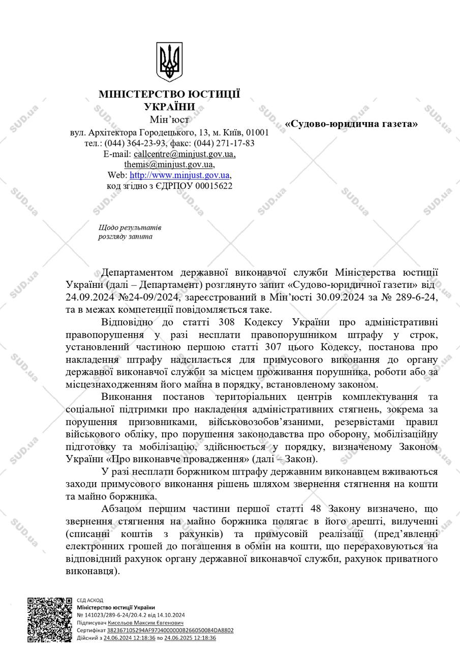 У Міністерстві юстиції розповіли, як із ухилянтів примусово стягуватимуть штрафи у разі їх добровільної несплати протягом 15 днів.
