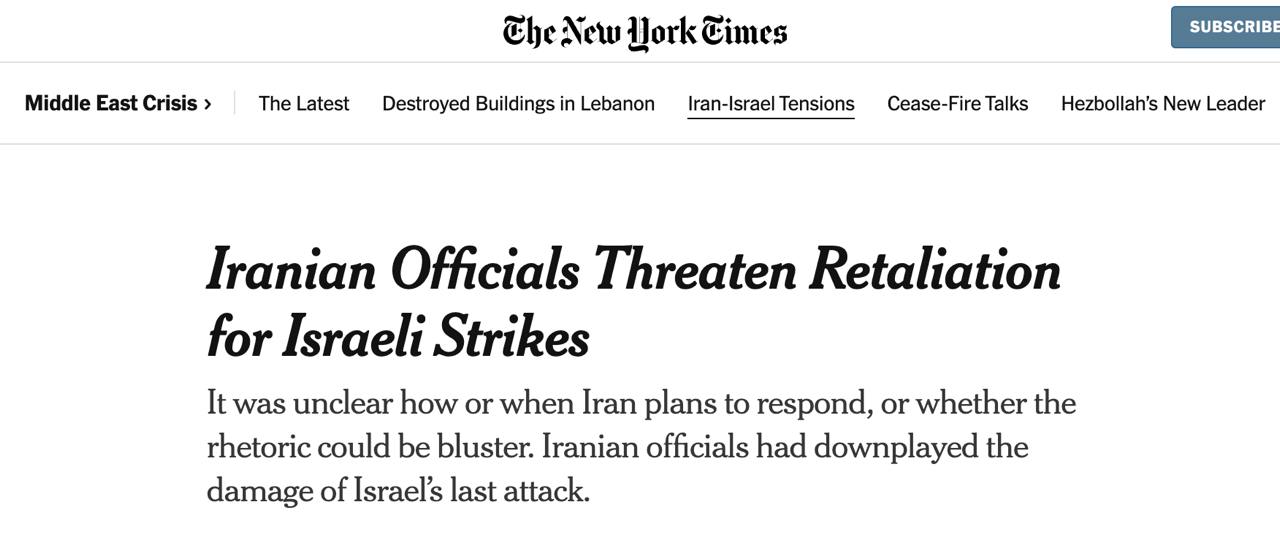 Нагадаємо, в ніч на 26 жовтня Ізраїль завдав удару по Ірану. Західні ЗМІ писали, що атакувано військові цілі, але не ядерні чи нафтові об'єкти, як спочатку планував Ізраїль, але чому противилися США.
