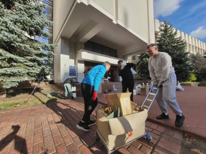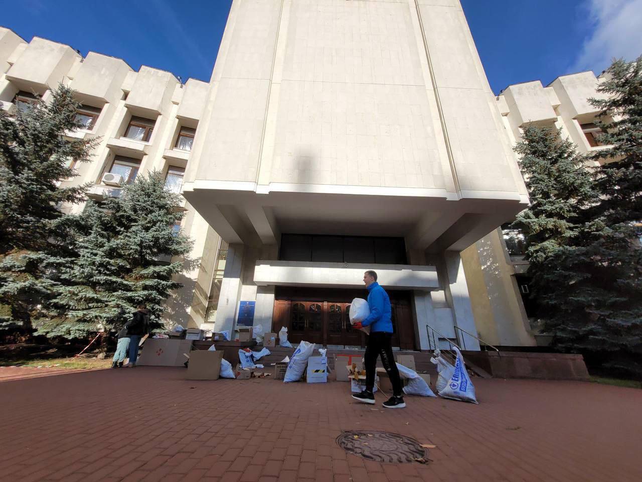 На місці працюють комунальники та поліція, також прибирати територію допомагають студенти.