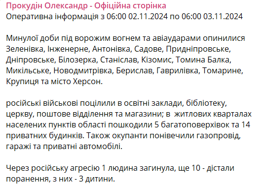 08:20 На Херсонщині за минулу добу через російську агресію 1 особа загинула, ще 10 - отримали поранення, з них - 3 дитини.