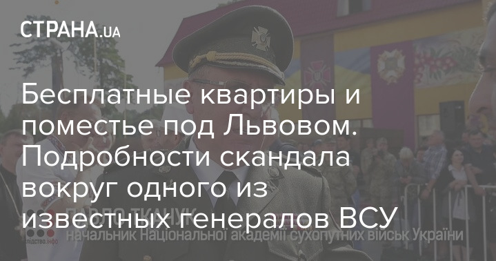 Начальник Національної академії Сухопутних військ ЗСУ Павло Ткачук оформив безкоштовно на себе кілька квартир, а мешкає тепер у розкішному маєтку під Львовом.