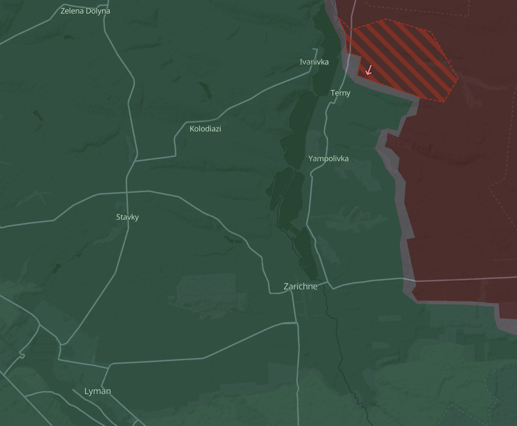 Велике просування РФ до Терн з півночі фіксував 1 листопада військовий паблік Deep State. Терни мають важливе значення для контролю лівого берега річки Жеребець, якою йде оборона Лимана.