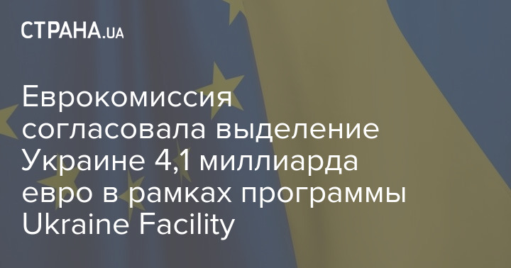 Європейська комісія погодила надання Україні 4,1 мільярда євро в рамках програми Ukraine Facility.