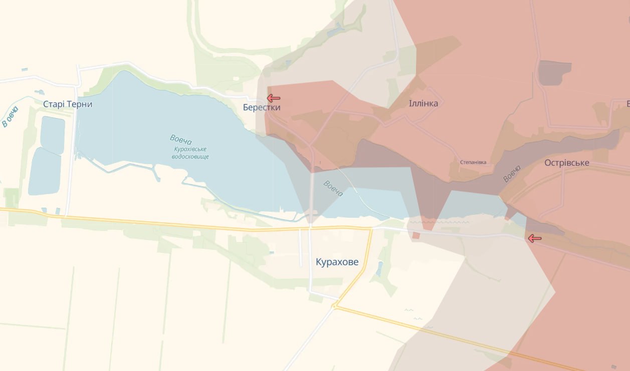 Раніше сьогодні українські паблики повідомляли, що росіяни вже ведуть бої на північно-західних околицях Курахового, переправившись через річку Вовча.