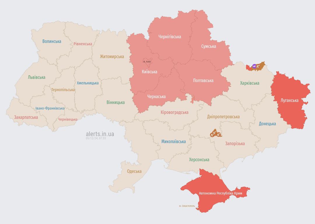 07:36 Ракетна небезпека у Києві та північних областях. Був запуск у напрямку Чернігова.