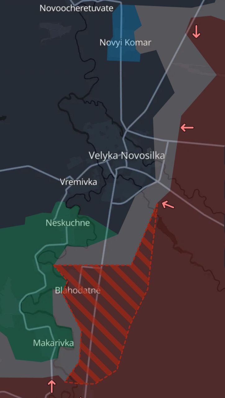08:36 ЗСУ відтіснили росіян із села Новий Комар біля Великої Новосілки, розблокувавши дорогу на північ від міста.