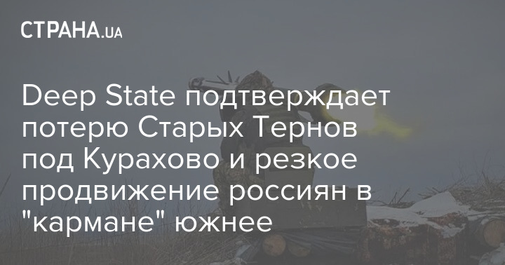 Карта українського військового пабліку Deep State підтверджує втрату Старих Тернів під Кураховим у Донецькій області. А також різке просування росіян у "кишені" на південь - на Успенівку.