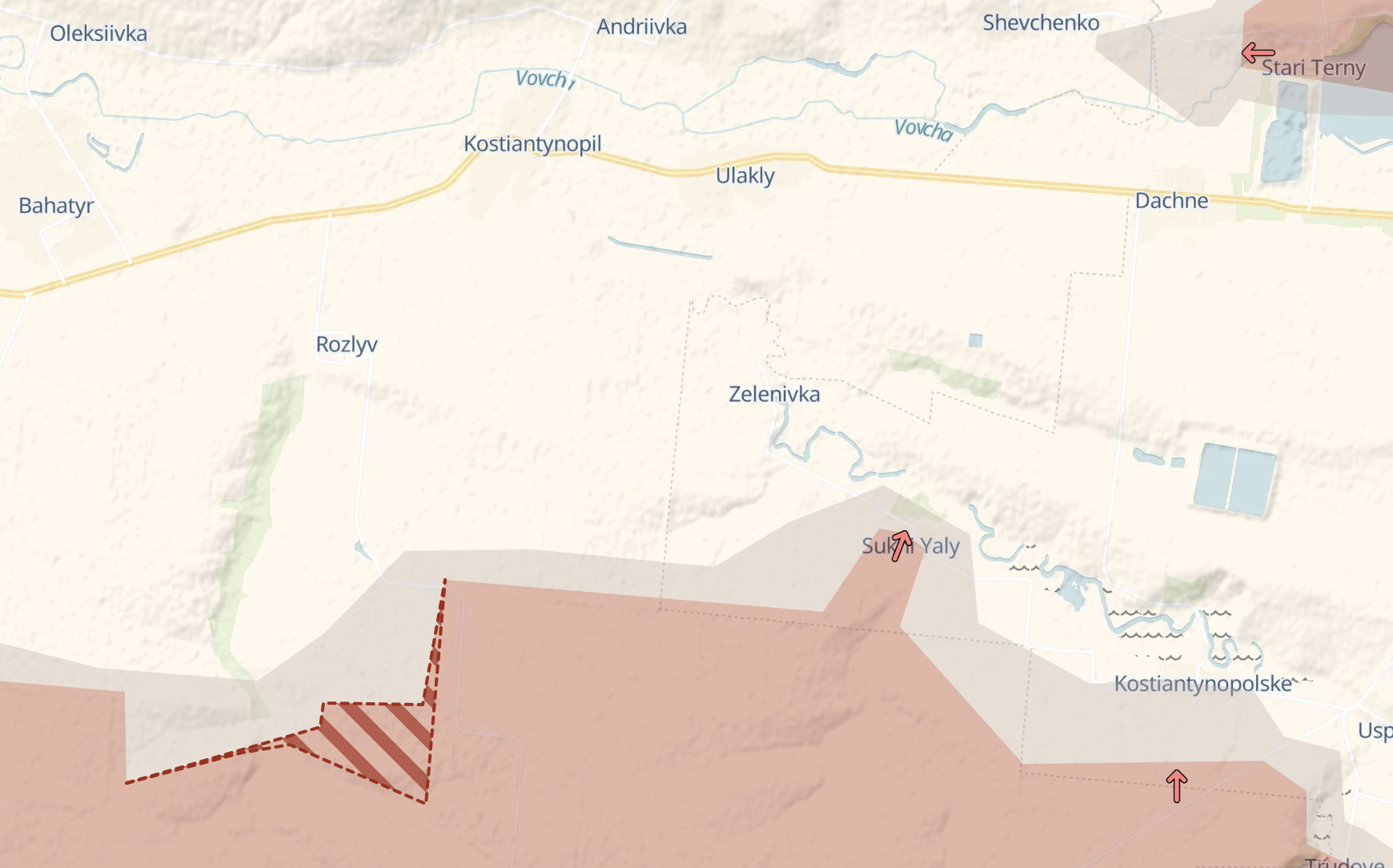 Також росіяни наступають на захід - на село Піщане, до якого їм залишилося менше кілометра. Цей рух, як припускають українські військові, спрямований на наближення до західної околиці Покровська та контроль за трасою, яка веде до міста з боку Дніпропетровської області.