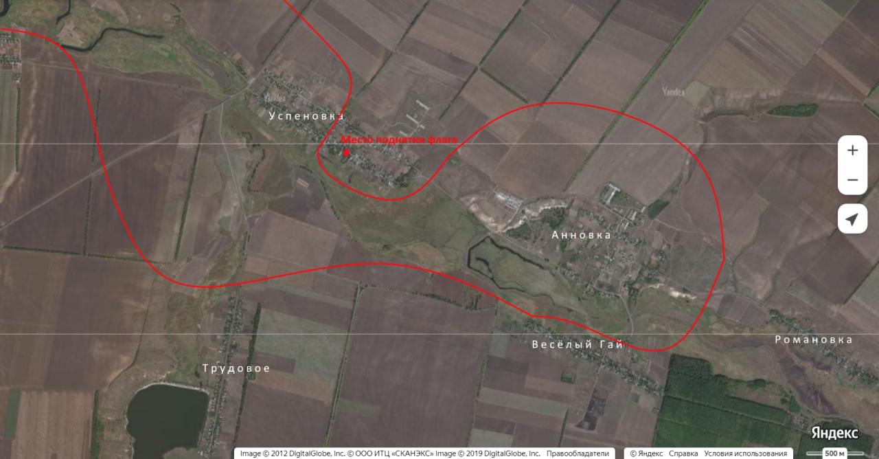 Російські ресурси сьогодні заявляють, що їхні війська увійшли до центру села Успенівка та публікують відео з прапором.