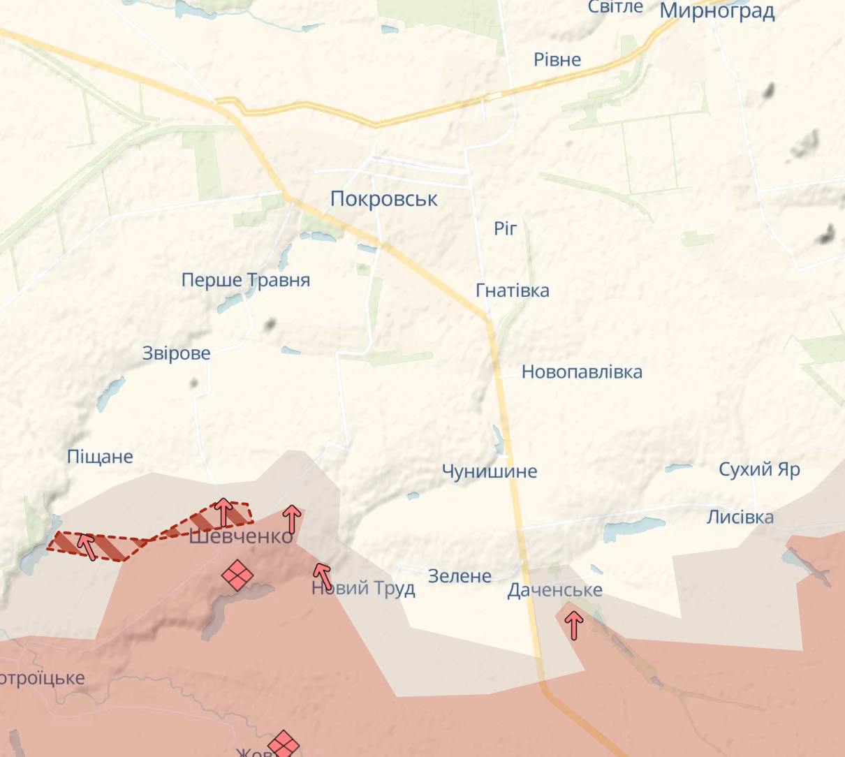 Вказано втрату територій у Шевченка та на південь від Піщаного, звідки на вихідних йшла українська контратака.