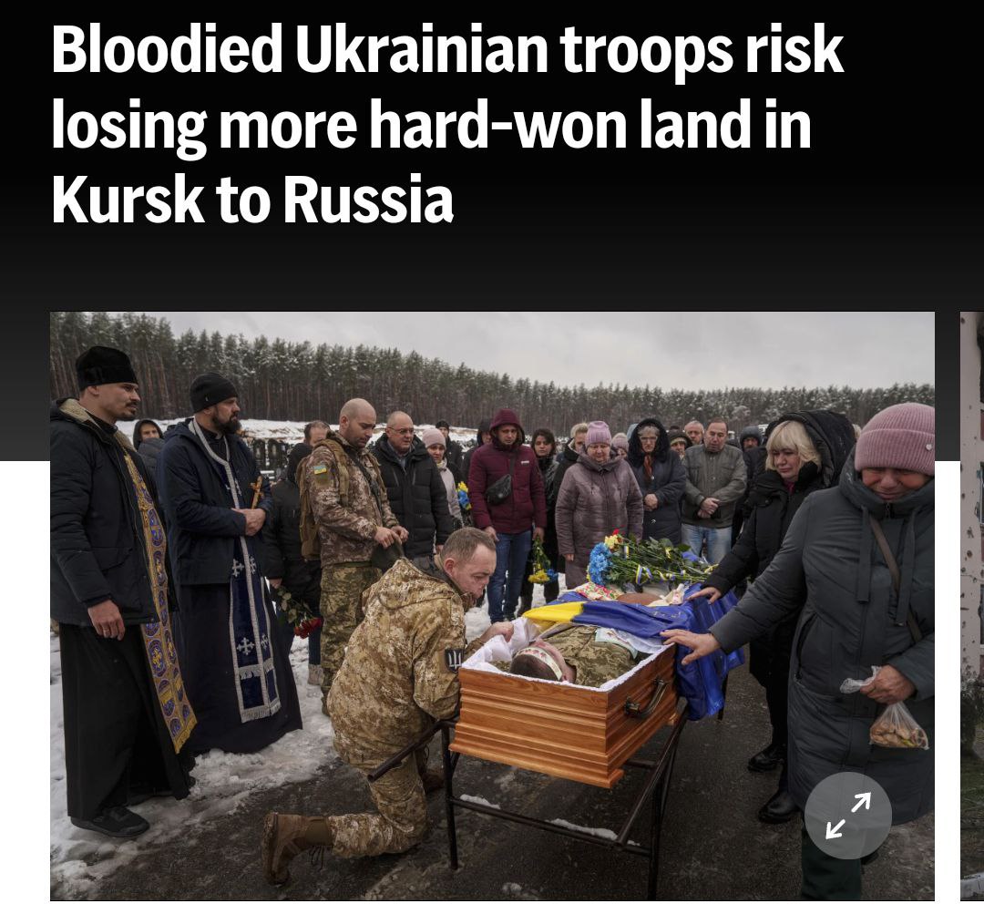 Через п'ять місяців після свого ударного наступу на Росію українські війська деморалізовані зростанням ризику поразки в Курську. Про це пише Associated Press.