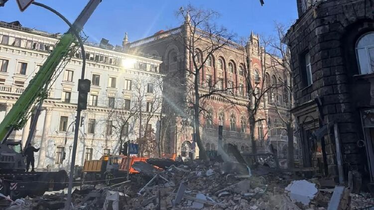 Як ми писали, під час ранкової атаки "Шахедів" на Київ постраждали відомий будинок на перетині вулиць Інститутської та Банкової, раніше званий "будинком Раднаркому", а також одна з будівель НБУ.