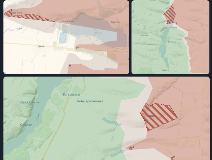 Також російські паблики стверджують, що ЗСУ втратили Російське Порічне та Косицю, що лежить південніше. Якщо це так, то під загрозу оточення потрапляє Черкаське Порічне, звідки ЗСУ робили атаки на Бердін. Але знову ж таки, підтверджень цим російським заявам немає.