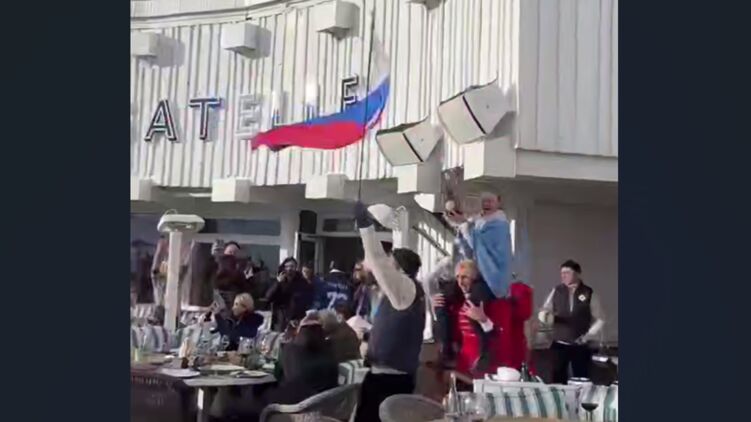 Битва за Куршевель. У ресторані, де звучала пісня "Вова, еб@ш" танцюють під "Матушка-земля" та прапори РФ. Відео