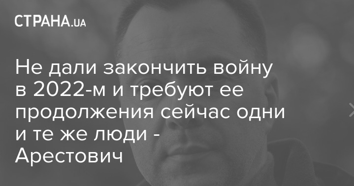 Колишній радник Офісу президента Олексій Арестович заявив, що "ті ж партнери, які не дали нам закінчити війну у березні 2022-го, наполягають на її продовженні у січні 2025-го".